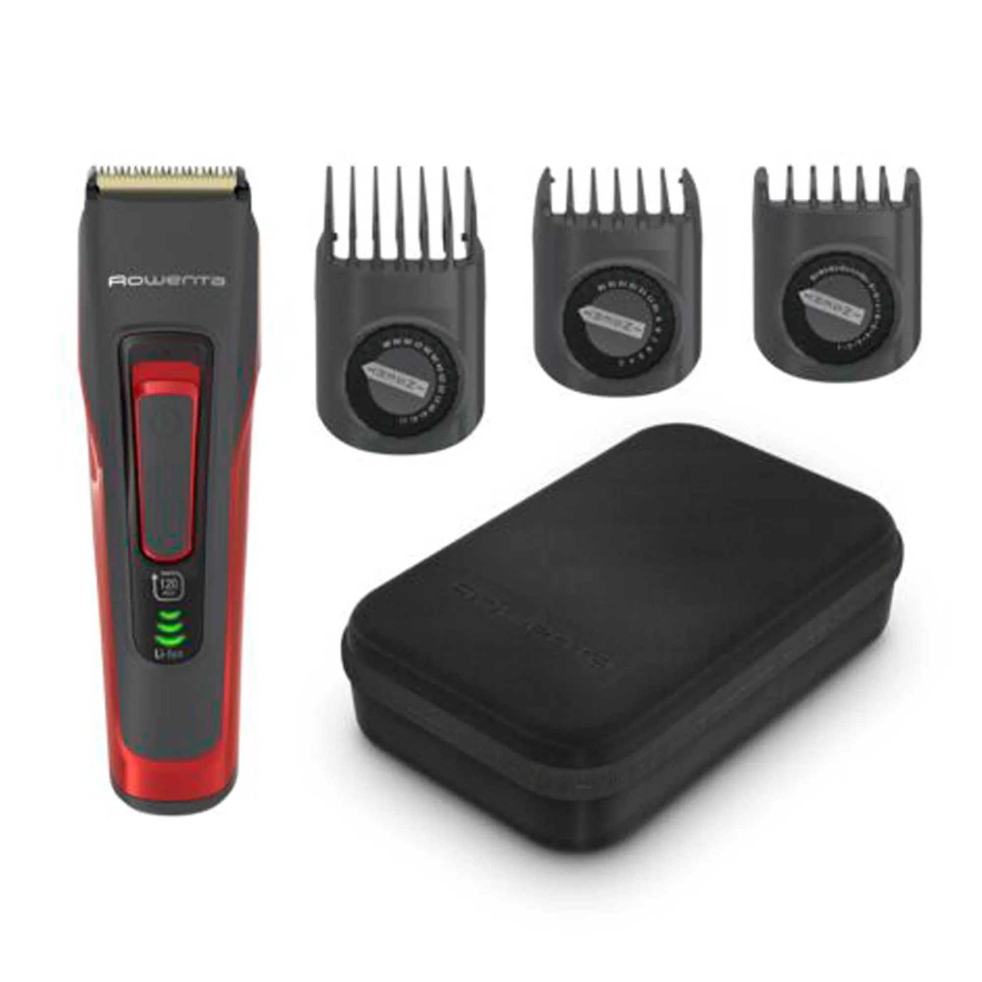 Aparat de tuns parul Rowenta Advancer TN5221F4, autonomie 120min, încărcare rapida, 3 piepteni, 45 de lungimi de tăiere, lame cu tehnologie de auto-ascutire, negru&roșu