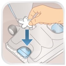 Înainte de a porni aparatul, așezați tableta în spațiul alocat pentru acest lucru, apoi turnați o picătură de ulei esențial (nu depășiți o picătură de ulei pe tabletă pe săptămână) direct pe tabletă (aveți grijă, nu scufundați tableta ). Apoi repuneți capacul la loc.