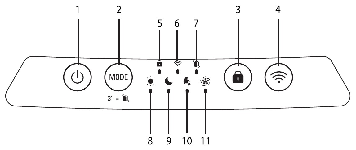 Dacă înlocuiești un filtru înainte de sfârșitul duratei de viață a acestuia, apasă butonul de mod (2) timp de 3 secunde pentru a reseta setările filtrului.