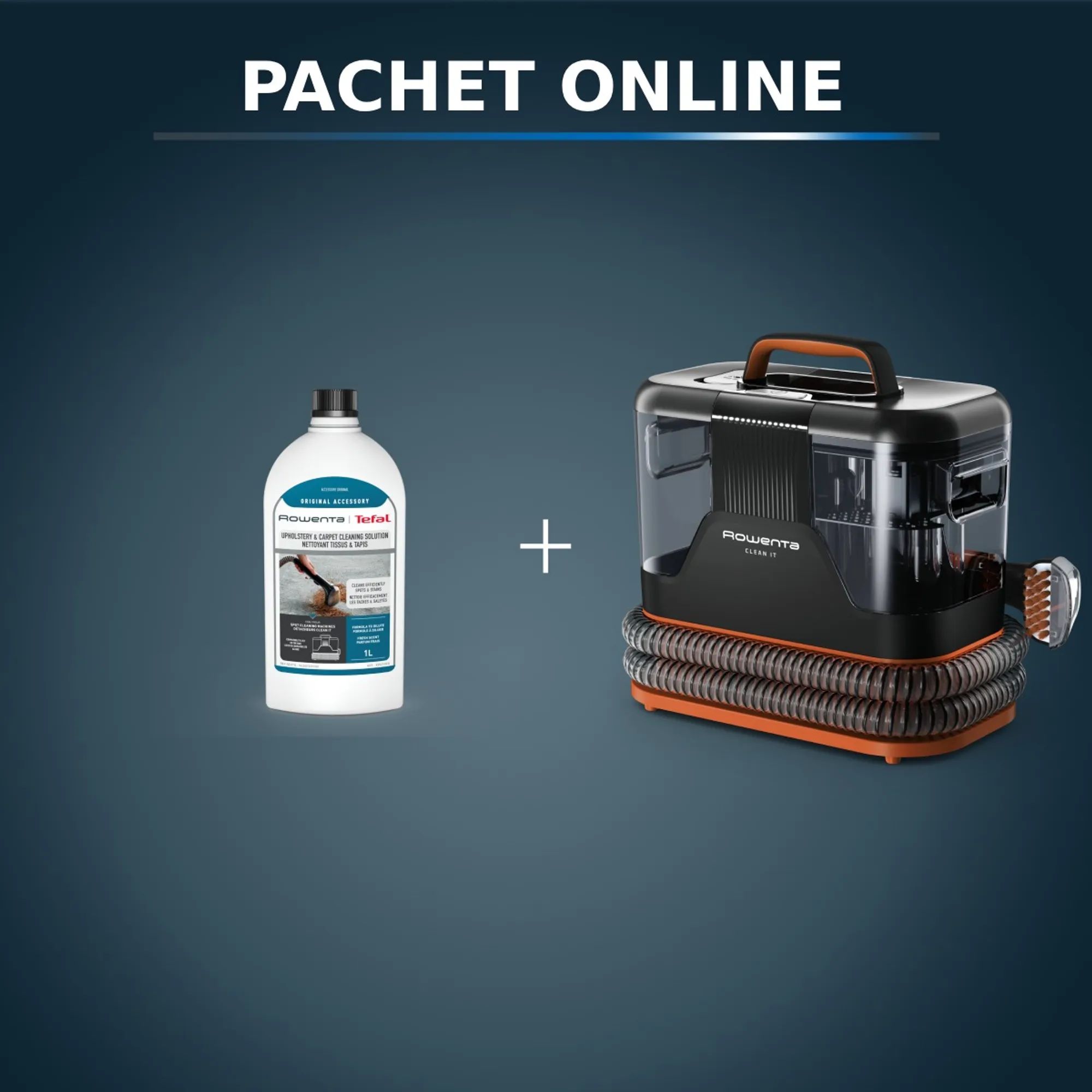 Pachet PROMO Aspirator tapiterie Rowenta Clean IT IN5011F0 si Detergent lichid Rowenta XD5310F0 pentru textile si covoare, 1 litru