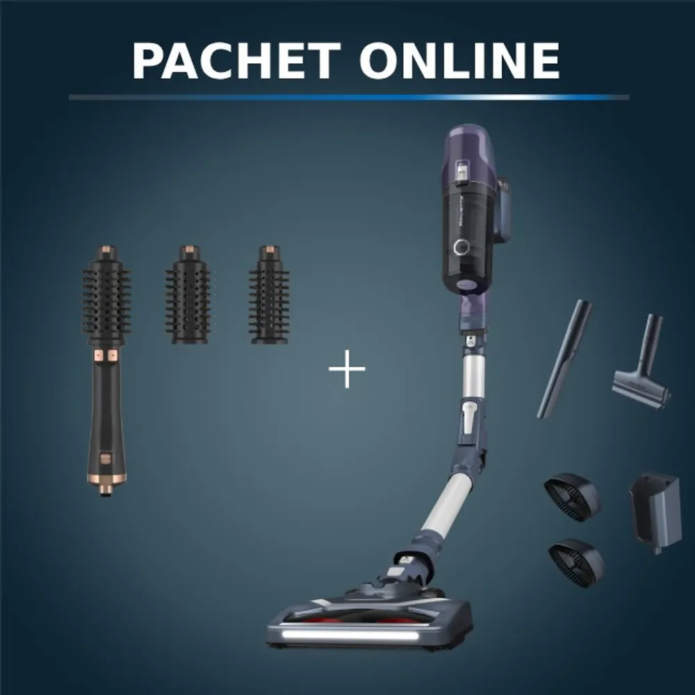 Pachet PROMO Aspirator vertical X-Pert 6.60 Essential RH6848WO si Peria rotativă cu aer cald Rowenta Ultimate Experience CF9620F0