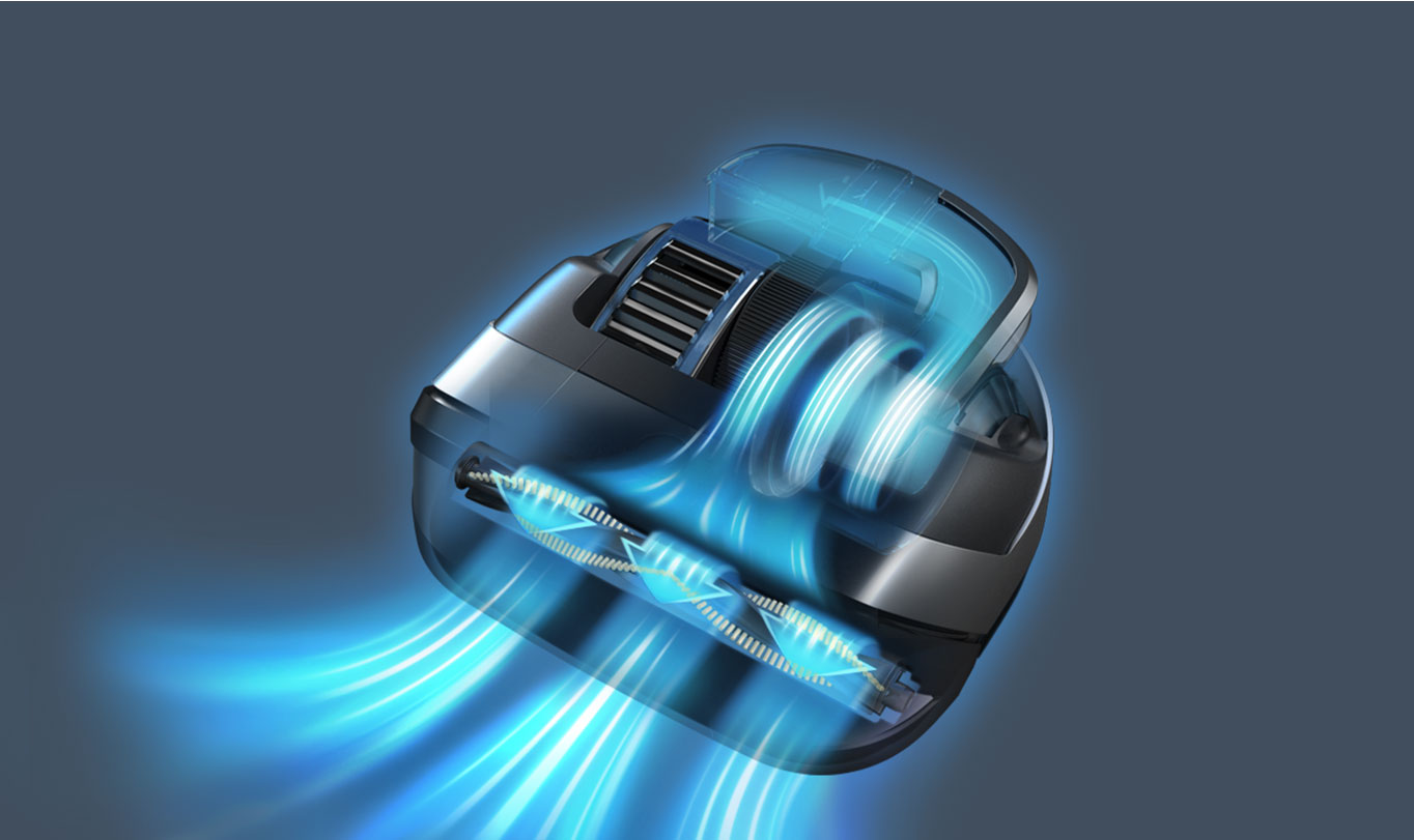 Un aspirator de înaltă calitate, care aspiră de-a lungul pereților datorită ergonomiei inovative, cu o capacitate mare a recipientului pentru praf și ușor de golit. Poate fi manevrat de la distanță datorită aplicației pentru telefon.